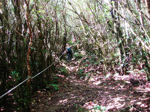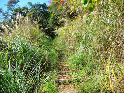 不過雖名為新線,但是一開始的路段卻是雜草叢生, 兩旁的芒花草幾乎將路徑淹沒,這或許是一般山友喜抄捷徑,新線較長而乏人問津之故吧。
