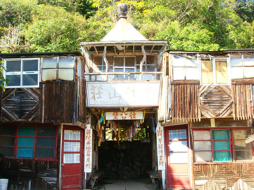 李棟山莊牌匾之下掛著一「往古堡」牌示,左右門聯對曰:山門不鎖待雲封 莊院無燈等月照,頗有文人雅興,不過如果從此處起登要酌收20元清潔費。