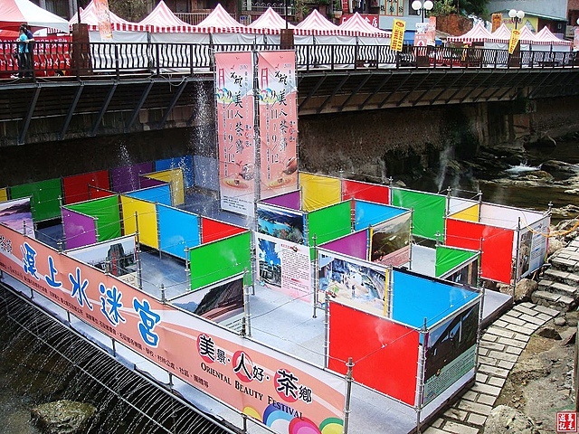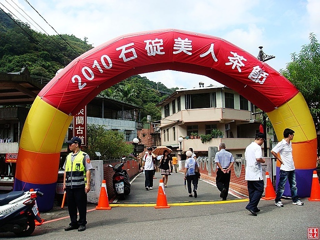 今日來到石碇鄉適逢舉辦「美人茶節」活動,石碇東西街異常熱鬧,街上有許多攤販搭起棚子販售當地名產,站在萬壽橋上往下瞧石碇溪的水上迷宮。