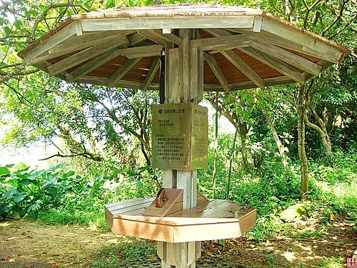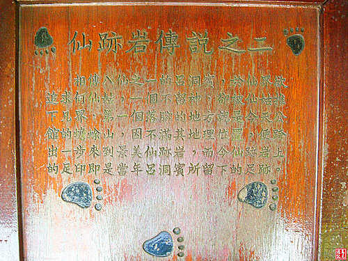 到達上方木棧道,先往右方涼亭內,看看仙跡岩傳說與仙跡石。