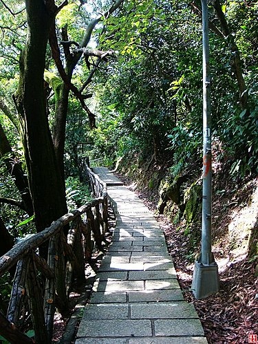 搭乘捷運至景美站下車,登山口的牌樓位於景興路218號一家早餐店的對面,剛開始有一段陡上的石階,讓人倍感吃力,稍後即步入濃密的林蔭之下,旁有長板凳可歇腳納涼。
