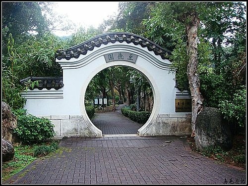 至善公園出來後再前行,在至善路與故宮路交叉口處有一至德園,入口處是一個別緻的古典圓拱門,進入步道小徑,別有一般清幽!