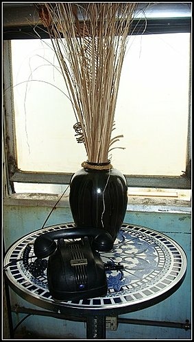 用餐時間到了,上到餐車,入口處有一具古老的電話,這種電話使用時要搖轉幾下把手,然後對方那邊會鈴響,就可以開始通話了。