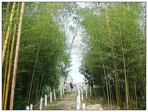 放牧區再繞上來,網狀水泥塊的步道通往桂竹林蔭休憩區。
