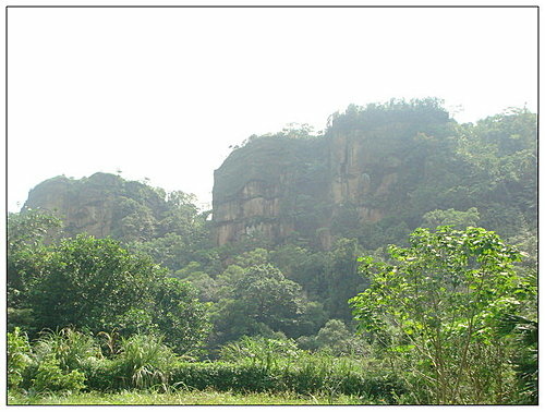 生態園區入口就在北二高高架橋下,此處可以眺望友蚋溪對岸連綿的石壁,山頭兩側的山坡一面較緩、一面較陡,又稱為單面山。