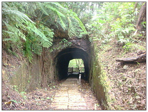 自花崗石階梯爬上小山坡,不久就可發現一座廢棄的古老坑道。