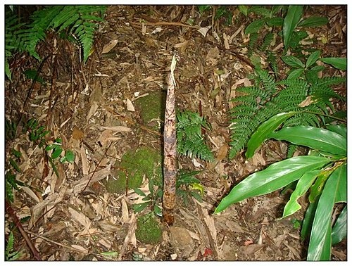 經過桂竹林,路中有許多桂竹筍,餐桌上竹筍炒肉絲的美味,和此刻的歹路難行卻是大相逕庭。