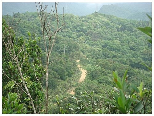 出叢林後寬大的泥土產道,讓人感覺豁然開朗,樹上有指標,直行十四坑山。