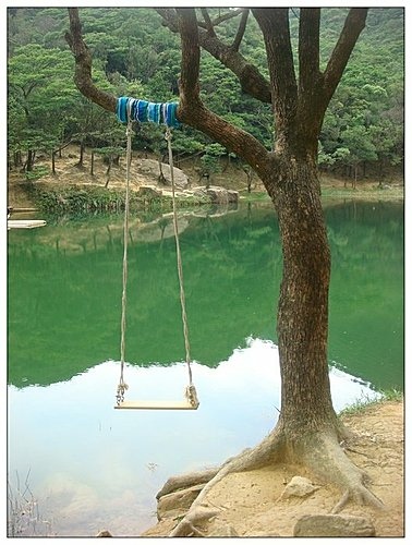 夢湖,山光水色相輝映,盪一盪鞦韆,今日至此行程約2小時,暫做小歇,真可說是先苦後甘。