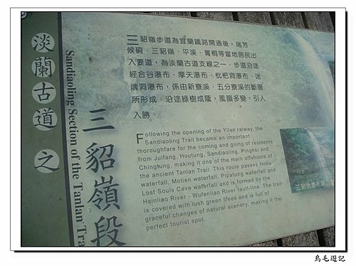 一旁的導覽牌訴說著猴硐至三貂嶺過去的歷史沿革,中英雙語真是圖文並茂。