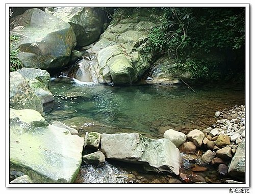 小溪兩旁綠樹遮蔭,已經有人裹足不前,開始摸魚抓蝦,享受魚水之歡樂。