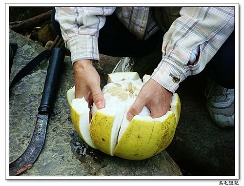 回程Fuli拿出開山刀,表演殺柚子絕活。