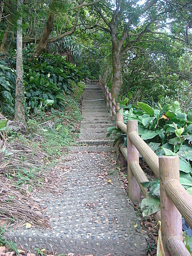 循著按摩步道階梯緩上後有叉路,先往右方涼亭。