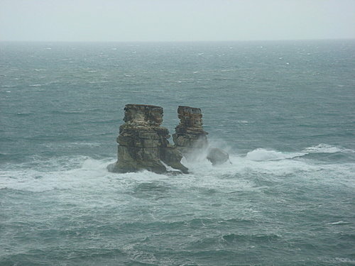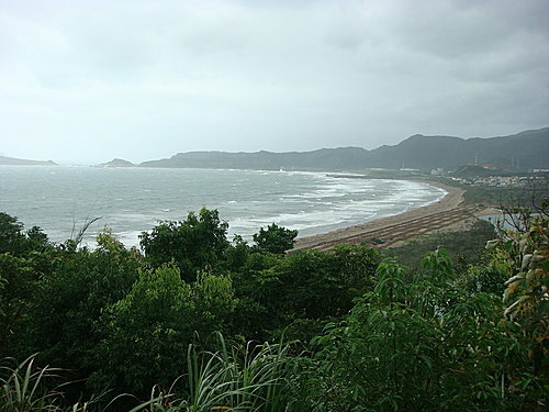 在涼亭內遠眺海岸線,只見後浪推前浪,風勢甚大,加上灰濛濛的天空,頗有山雨欲來之色。