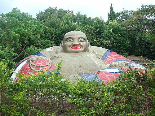 至中正亭前先取叉路至彌勒佛像,佛像慈眉善目面海看日出日落、潮起又潮落,正所謂:大肚能容了卻人間多少事,滿腔歡喜笑開天下古今愁。