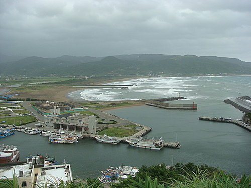 續往中正亭的步道上,左下方可見磺港一帶漁船已紛紛停泊避風。