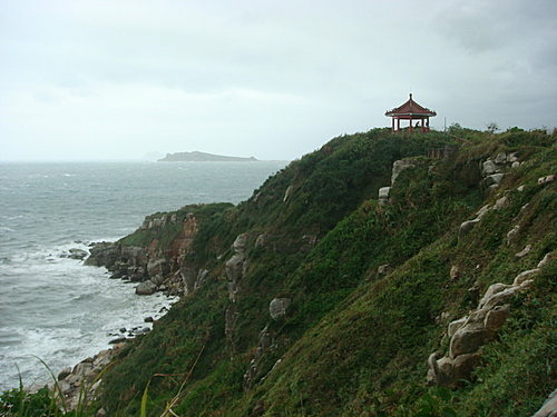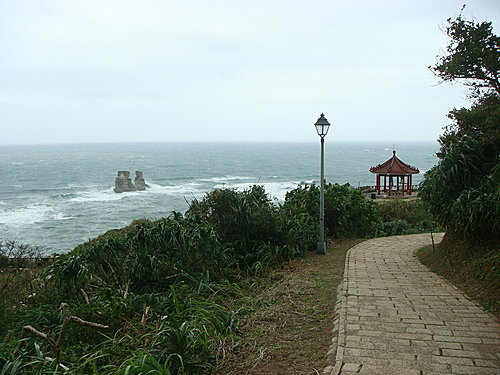 往中正亭前左方另有海岸神秘步道,自步道上回望中正亭。本想續行,但因上次風災前方步道已嚴重坍方而封閉,只好作罷。