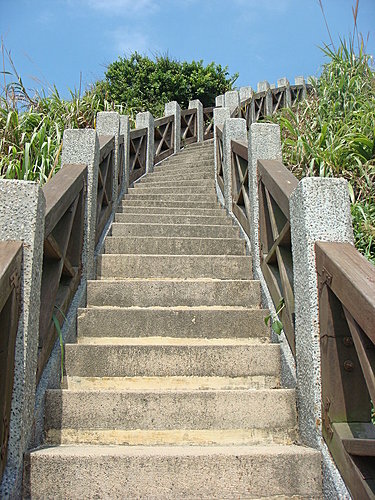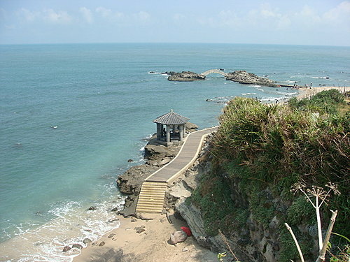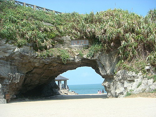洞前兩側有人工步道可爬到海蝕洞頂部