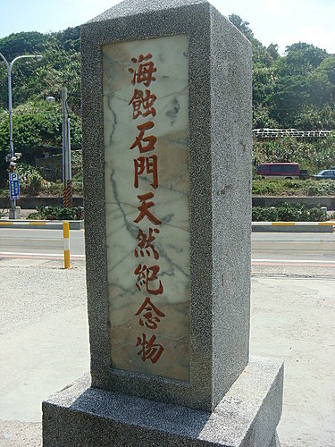 石門洞有著豐富且難得一見的海蝕地形景觀,我自捷運淡水站搭乘淡水客運在石門洞站下車。石門洞最吸引人的就是巨大的海蝕拱洞景觀,一般稱之為海拱,洞高約十公尺,而「石門鄉」亦因此得名。據說清乾隆年間,先民到此地開墾,因為看見這座形狀像拱門的海蝕洞,遙望有如古城大門,故將此地命名為「石門」,又同治年間《淡水廳誌》也有記載,將「海岸石門」列為淡水外八景之一。