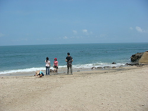 看見一家子共同享受陽光、海岸、沙灘,沉浸在海天一色之中,是多麼溫馨美滿的畫面。