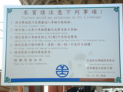 苗栗鐵道文物展示館(Miaoli Railway Museum),又名苗栗鐵道公園、苗栗鐵路機車展示館,位於苗栗市、台鐵苗栗車站南端,為台灣鐵路管理局所轄之文物展示館,專門保存鐵道車輛公開展示的場所,目前由苗栗機務分駐所管理,可自由參觀。自汐止搭乘1011次自強號至苗栗站下車,出車站右轉過客運總站直行,有指標往鐵道文物館,過地下道轉英才路,大約步行10幾分鐘就到了。