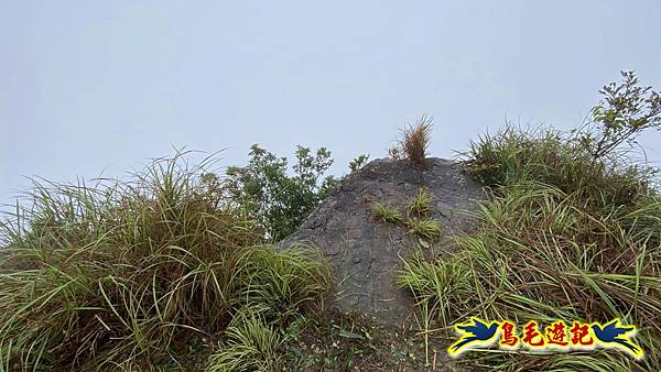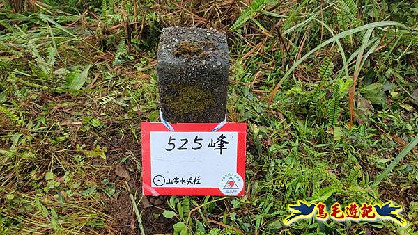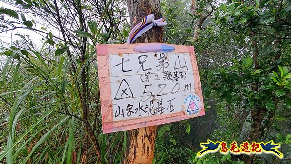 通過雜樹林區,約12分再穿越一段芒草區,爬上七兄弟山(525峰),有「山」字水泥基石,鷹石尖至此約28分。