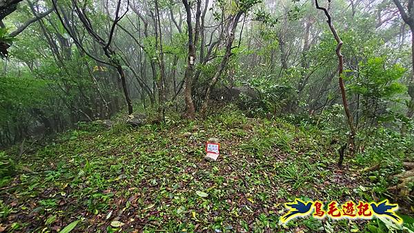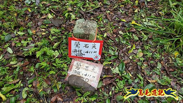 位於樹林中,小空地上有土地調查局圖根點基石,海拔411公尺。