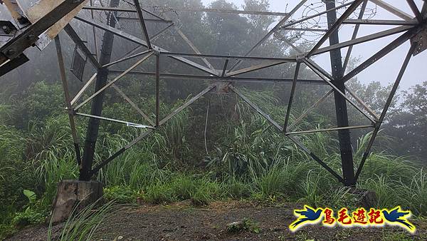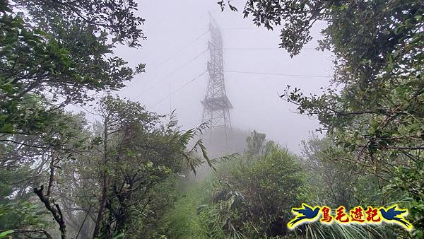 離開鷹石尖,續前行10分至電塔,芒草區拉繩爬上,風勢強勁,