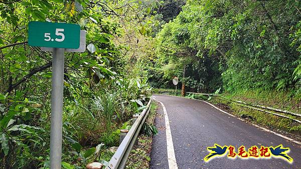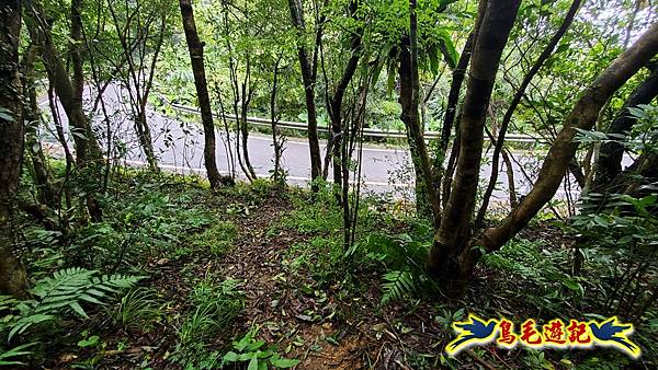 續一路下坡,經竹林不久已見下方的登山口(約宜1鄉道/5.1K),外大溪山下此約11分,