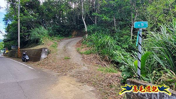 8:39彎道叉,此處有新北市路燈編號581300電桿,路旁停車後依中九芎坑橋指標方向進入,山腰路小徑,