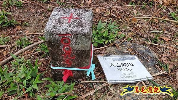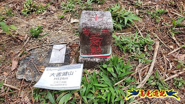 8:19大舌湖山,海拔514公尺,三等三角點基石1009號,山頂可眺望對面山坡大片茶園風光。