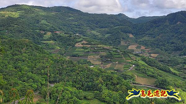 8:26從第二登山口下來,位於山坡茶園上方,可俯瞰左下角大舌湖溪谷,