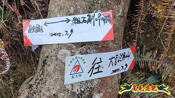 8:10土石路產道叉,左往大舌湖山,直行是大舌湖山第二登山口,取左進入,可由第二登山口出來O形一圈,