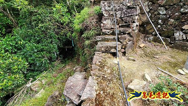 8:44梯田小徑過來左下石階,續接山腰路古道,