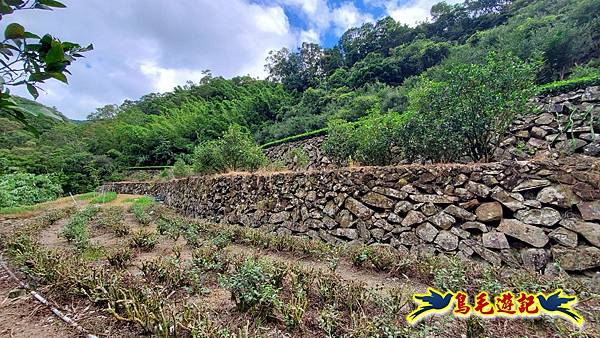 下行不久右轉,石砌駁坎茶園梯田小徑直走,