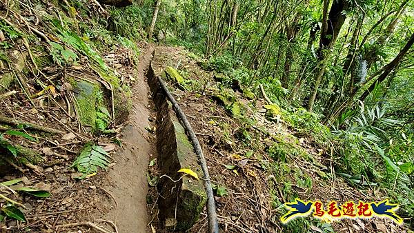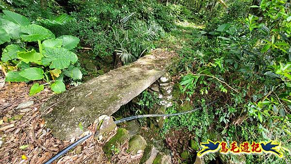 9:28九芎坑圳沽古道相當稀罕的石造引水道,感謝藍天隊江隊長率眾清理,江隊長說:這是目前發現最完整且最長的石造水梘!