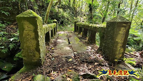 9:31上九芎坑橋,很有古典美!另端有上色紅漆更為鮮明,橋頭石柱上有「民國四十四年十月竣功」字,