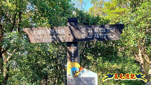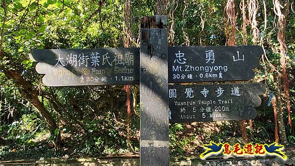 經圓覺寺山門牌樓,接碧山路,往左行至鯉魚山登山口,指標是往大湖街葉氏祖廟,