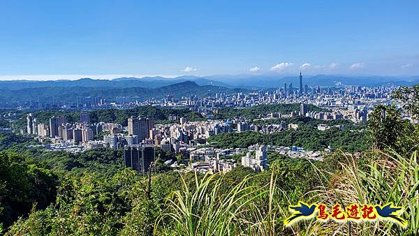 經過鯉魚山涼亭後,階梯步道一路陡下,途中空曠處可飽覽台北市區風光,約13分下接來時的大溝溪步道叉路,取右行,
