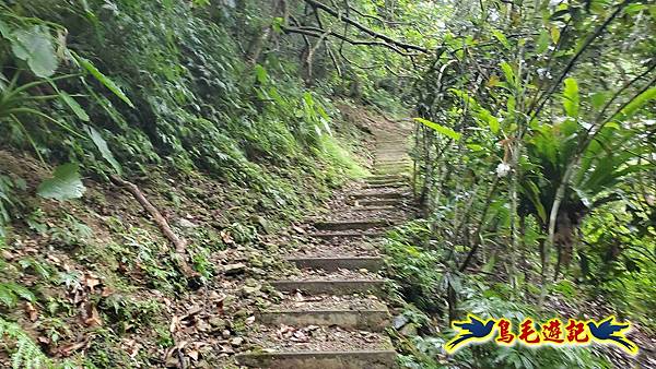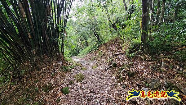 10:07木板土階步道上來竹欉鞍部叉路,直行會通往山腰間民宅,取左往五叉路鞍部,