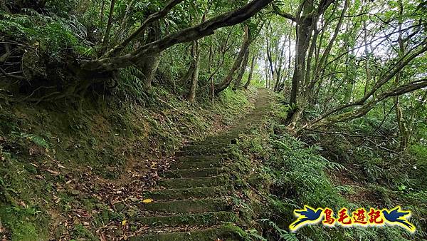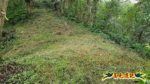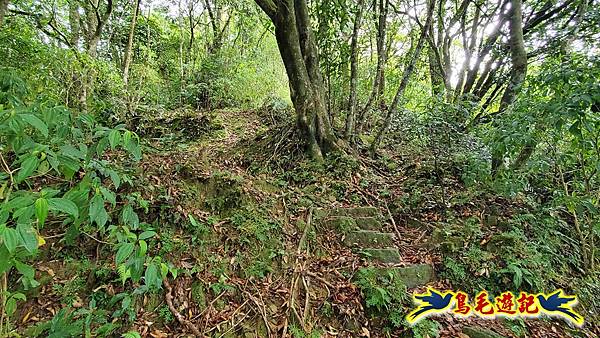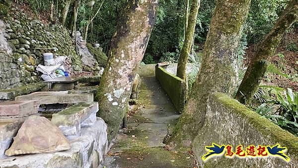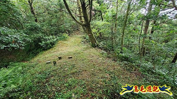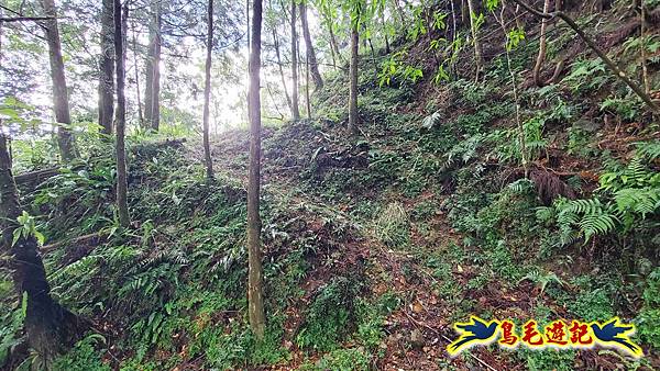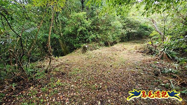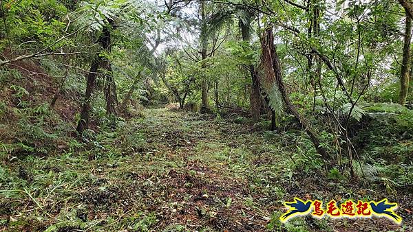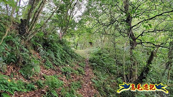 10:59原路回程畚箕湖廢產道(約800公尺)爬上山腰古道,11:04五叉路鞍部,取右下往豹子廚9號王宅,
